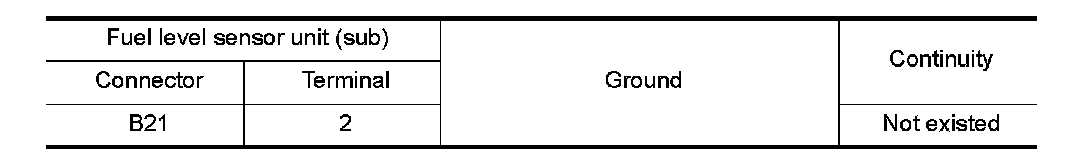 3.Check continuity between fuel level sensor unit (sub) harness connector terminal and ground.
