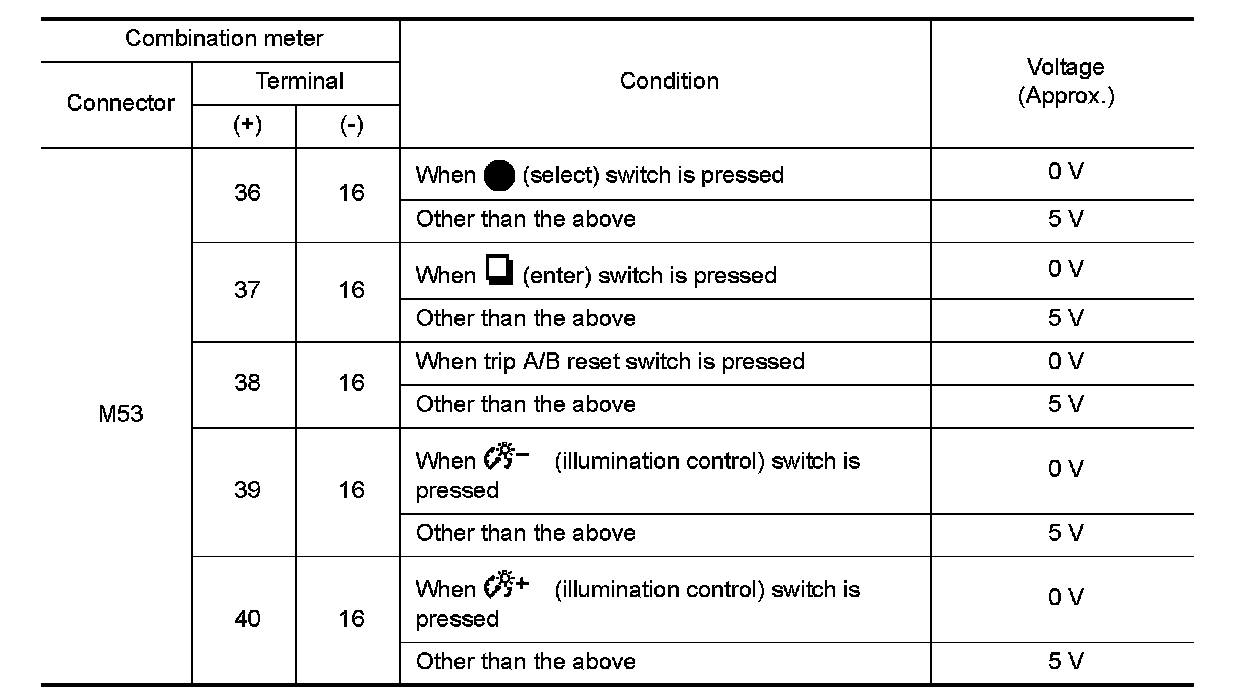 2.Measure voltage between the following terminals of the combination meter.