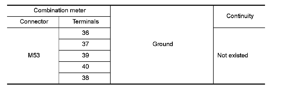 4.Check continuity between combination meter harness connector terminal and ground.