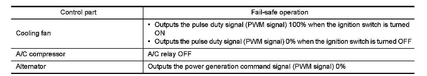 When CAN communication with ECM and BCM is impossible, IPDM E/R performs fail-safe control. After CAN