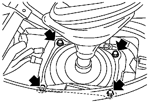 c.Remove console finisher assembly as shown in the figure. Refer to "M/T MODELS : Removal and Installation" Removal and Installation.