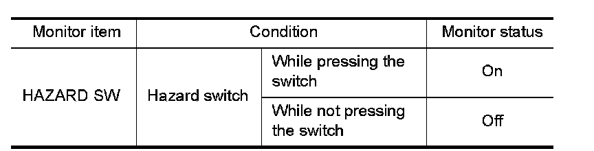 3.With operating the hazard switch, check the monitor status.