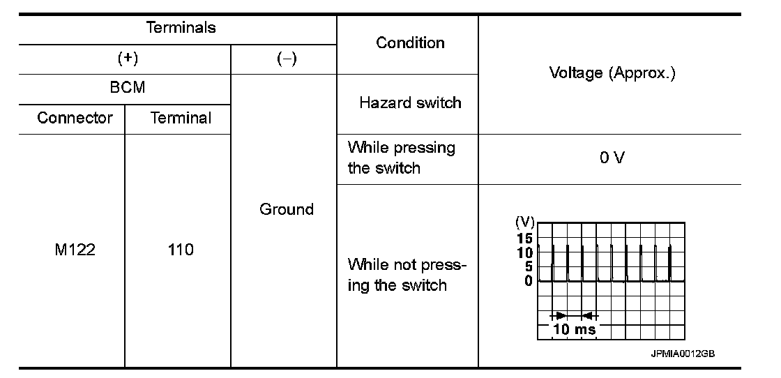 With operating the hazard switch, check the voltage between the BCM harness connector and the ground.