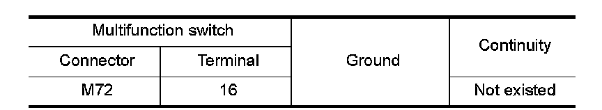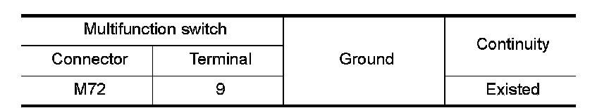 Check continuity between the multifunction switch harness connector and the ground.