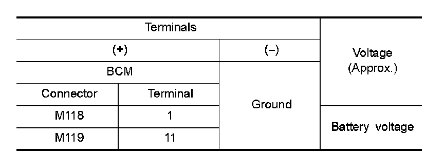 3.Check voltage between BCM harness connector and ground.