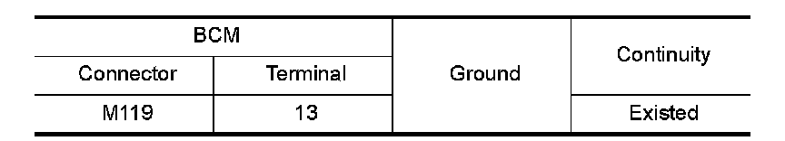 Check continuity between BCM harness connector and ground.