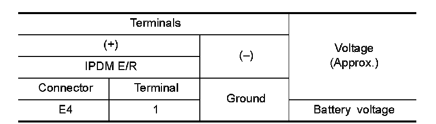 3.Check voltage between IPDM E/R harness connector and the ground.