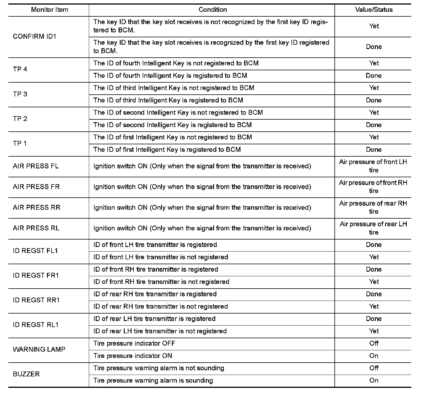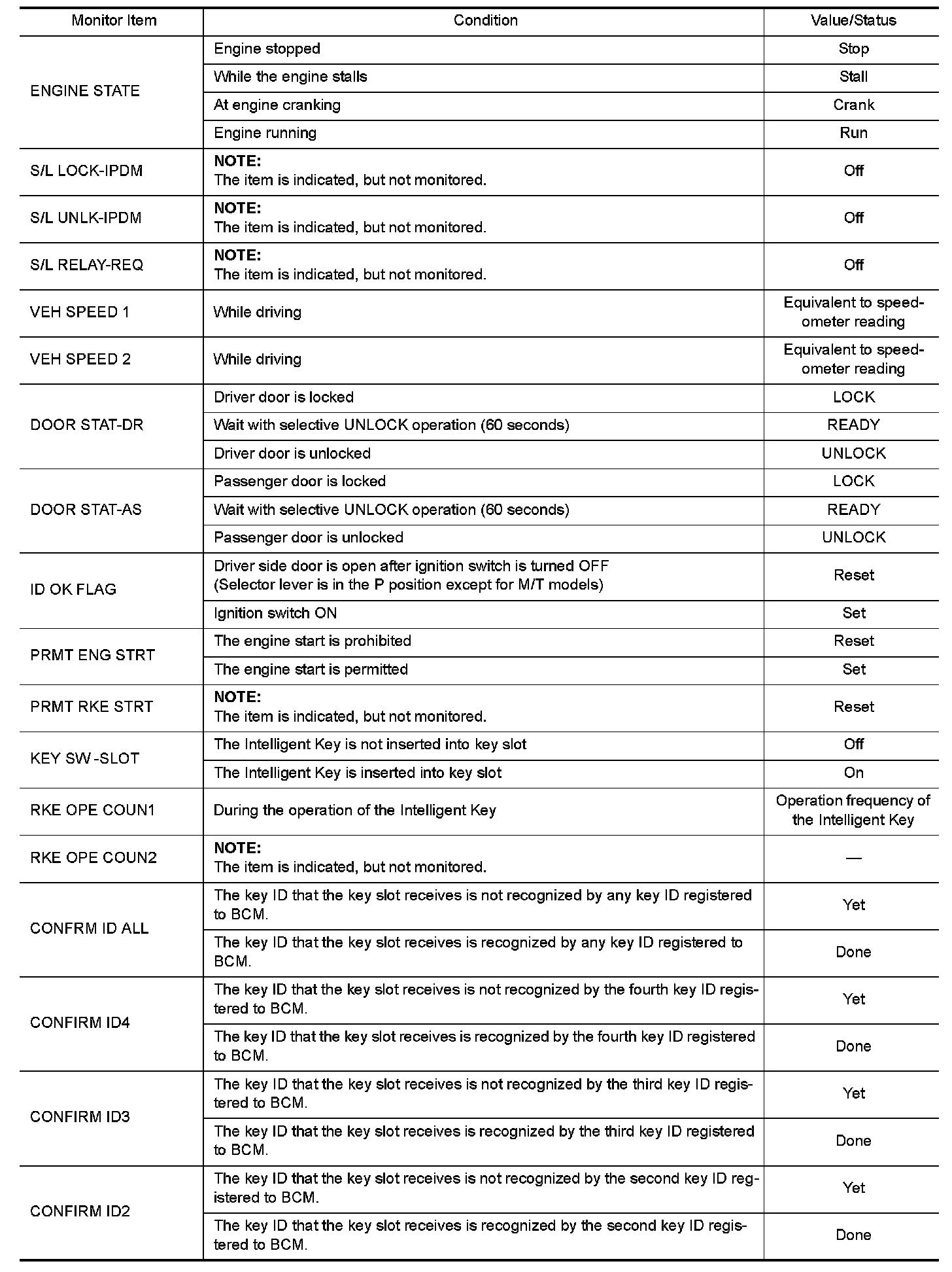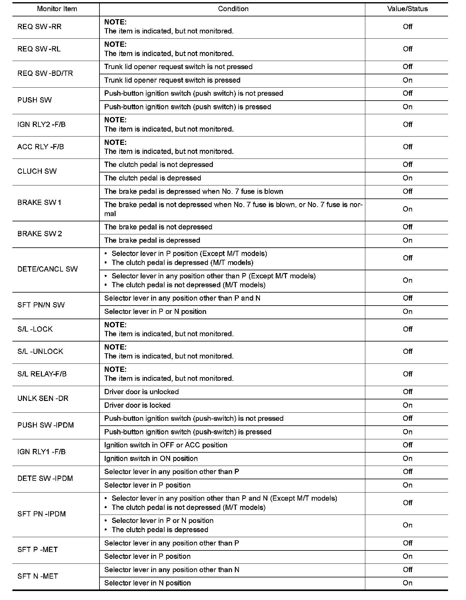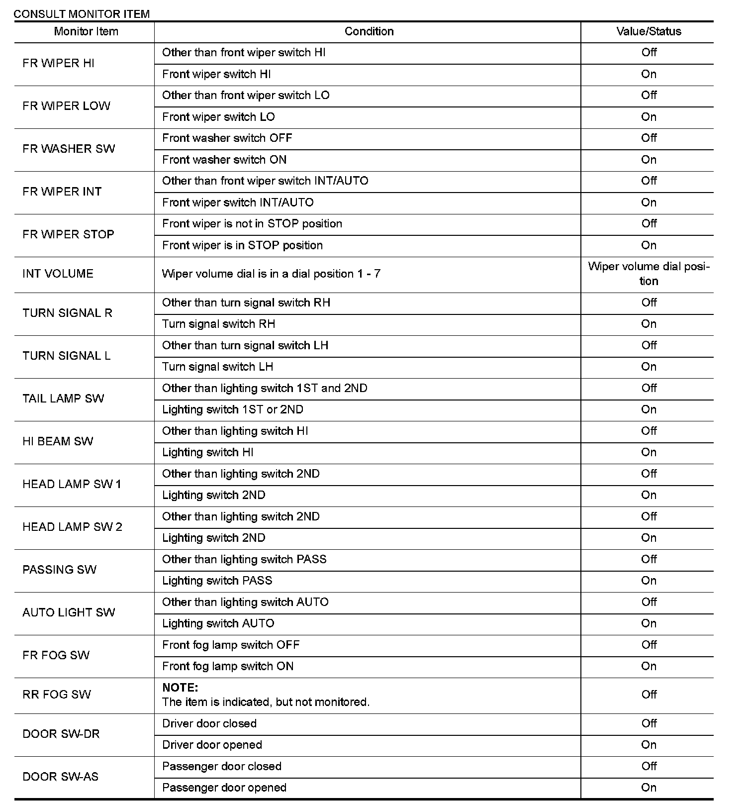 The following table includes information (items) inapplicable to this vehicle. For information (items) applicable to this vehicle, refer to CONSULT display items.