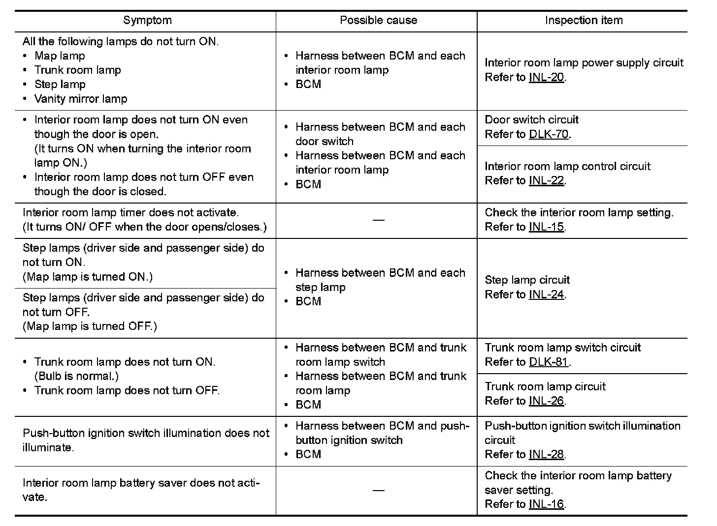 INTERIOR LIGHTING SYSTEM SYMPTOMS