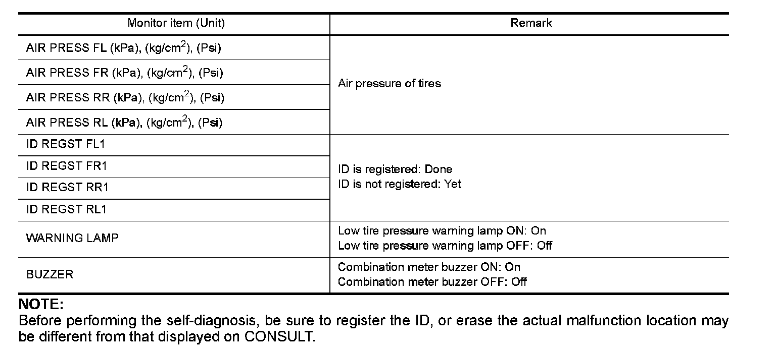 Before performing the self-diagnosis, be sure to register the ID, or erase the actual malfunction location may be different from that displayed on CONSULT.