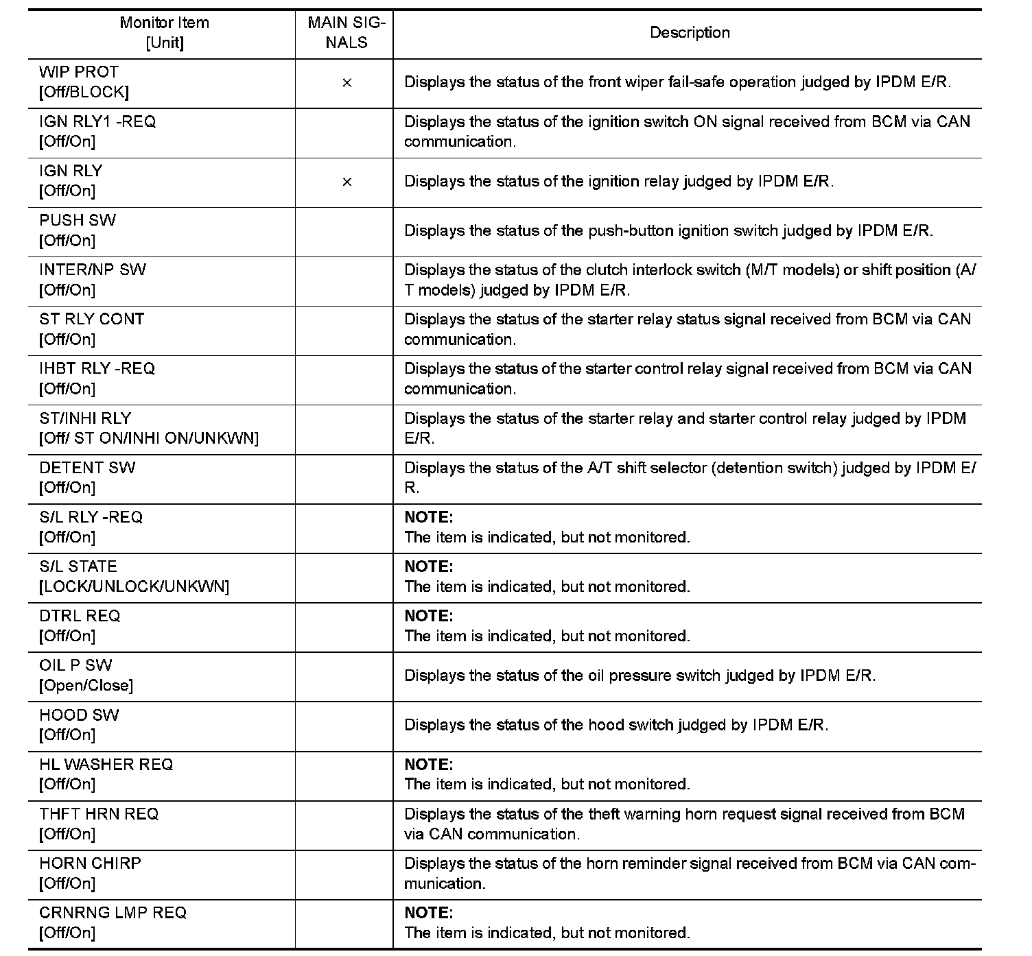 The following table includes information (items) inapplicable to this vehicle. For information (items) applicable to this vehicle, refer to CONSULT display items.
