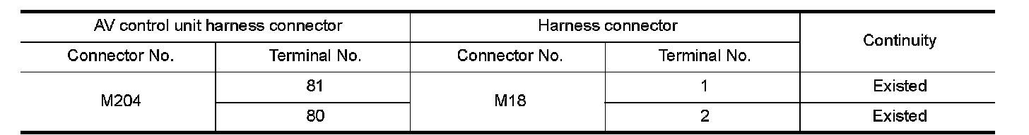 2.Check the continuity between the AV control unit harness connector and the harness connector.