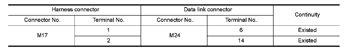 NO- Repair the main line between the harness connector M17 and the data link connector.