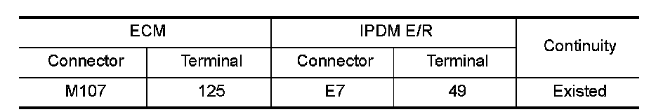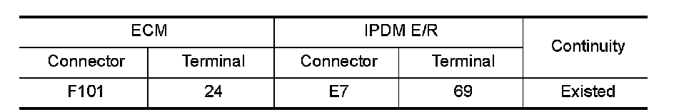 3.Check the continuity between ECM harness connector and IPDM E/R harness connector.