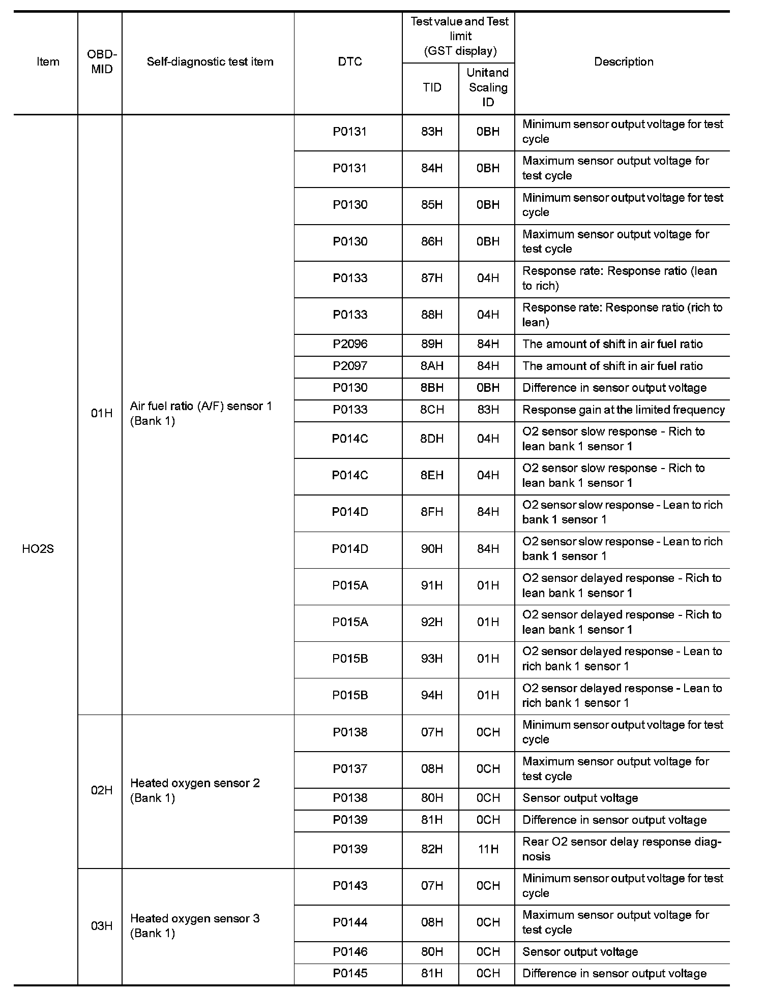 The following is the information specified in Service $06 of SAE J1979/ISO 15031-5.