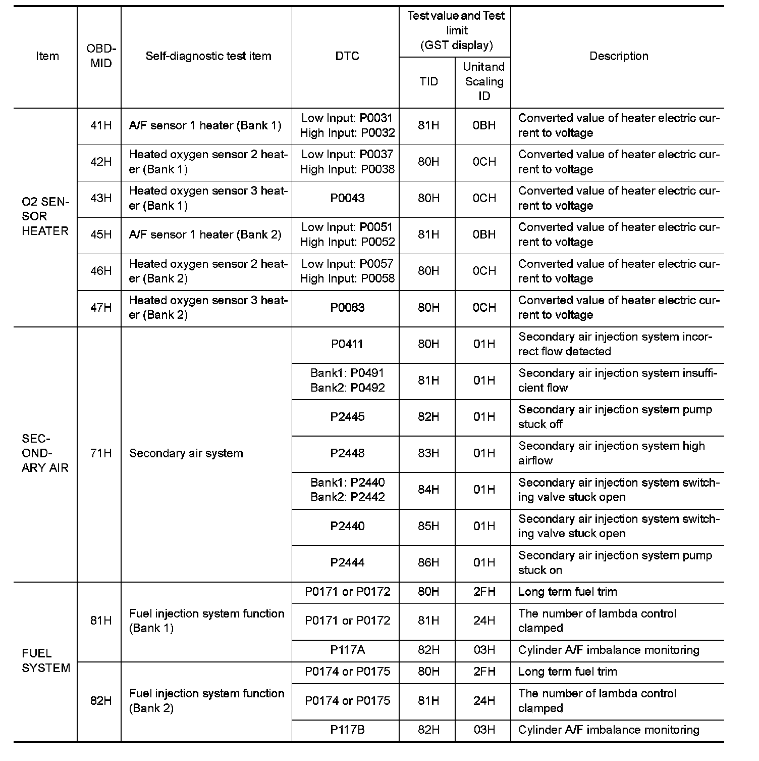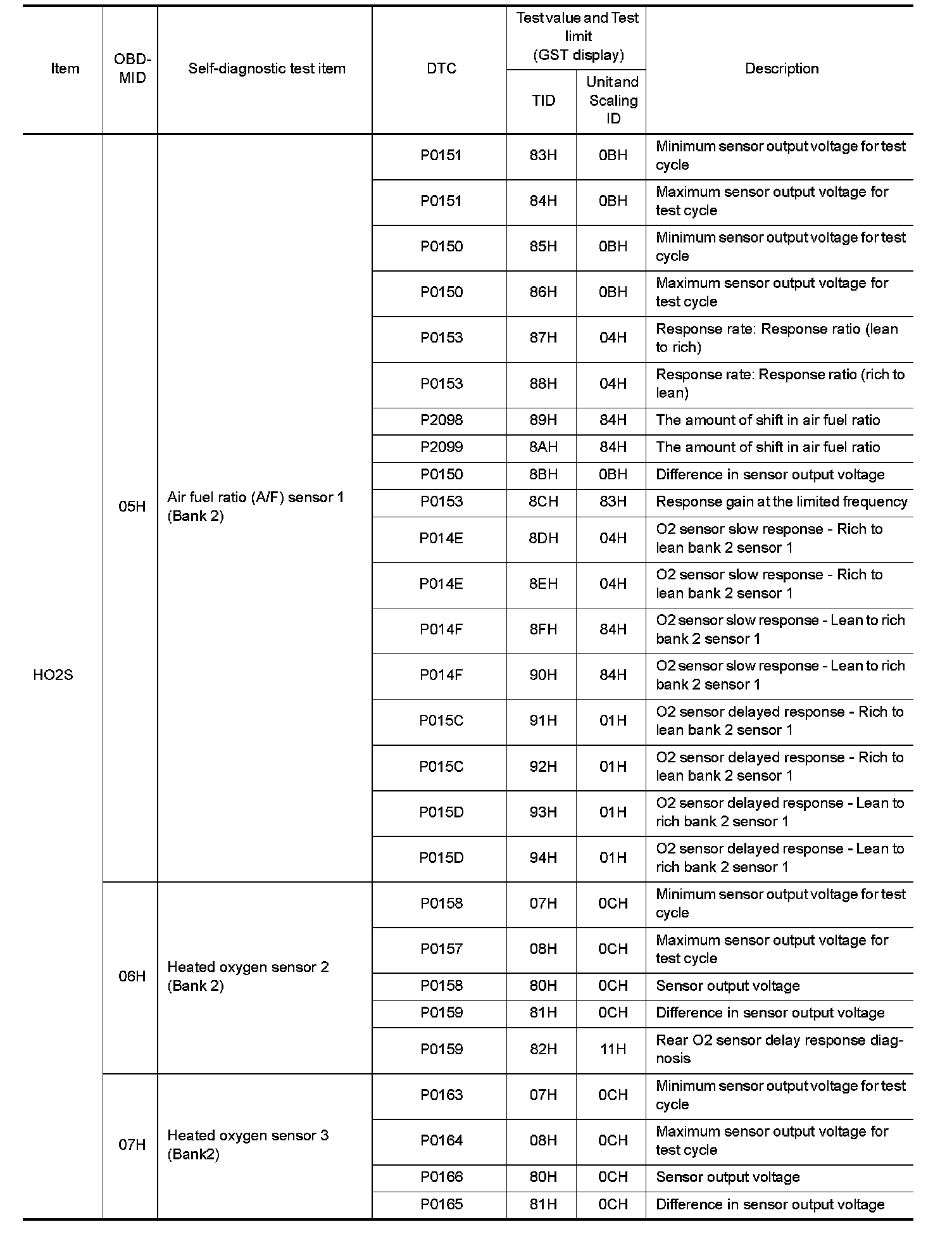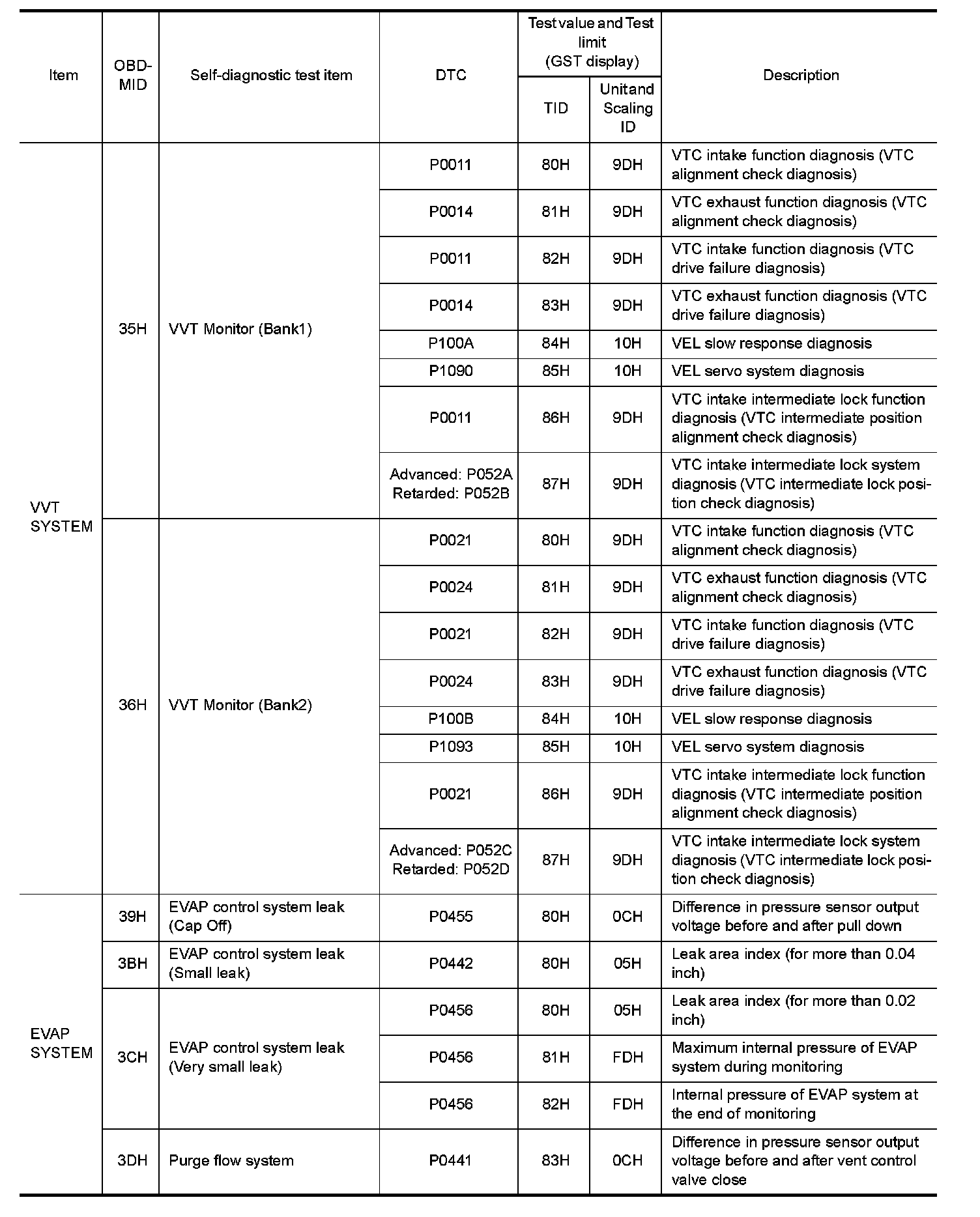 These data (test value and test limit) are specified by On Board Monitor ID (OBDMID), Test ID (TID), Unit and