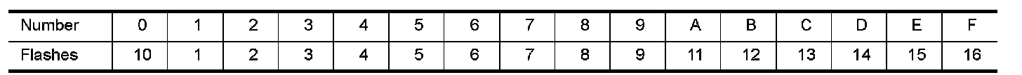 A particular trouble code can be identified by the number of four-digit numeral flashes per the following.
