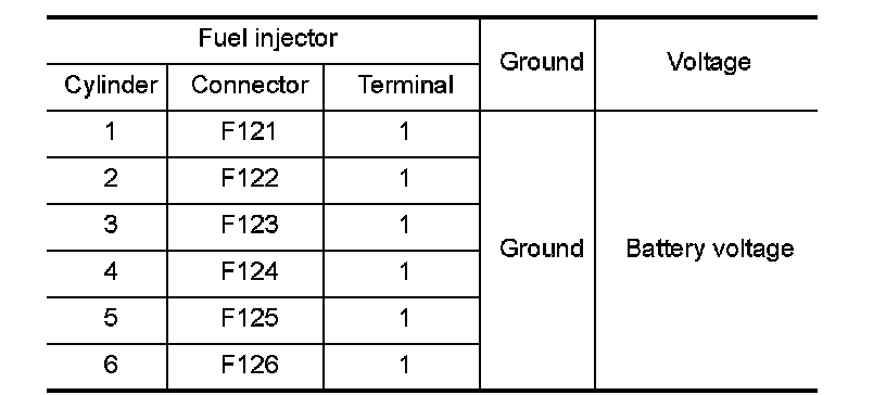 4.Check the voltage between fuel injector harness connector and ground.
