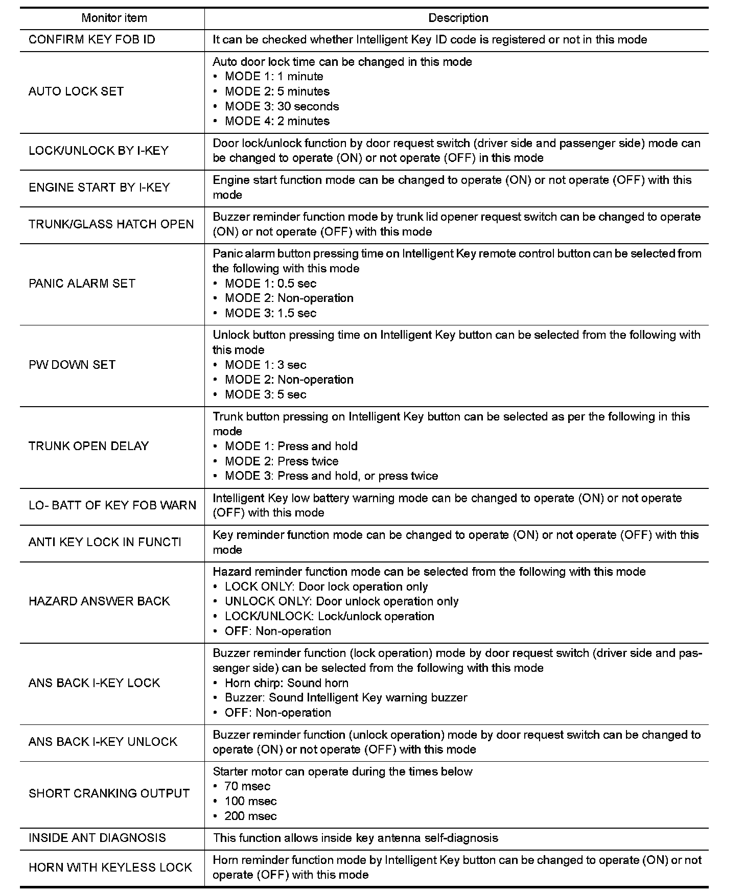 INTELLIGENT KEY : CONSULT Function (BCM - INTELLIGENT KEY)