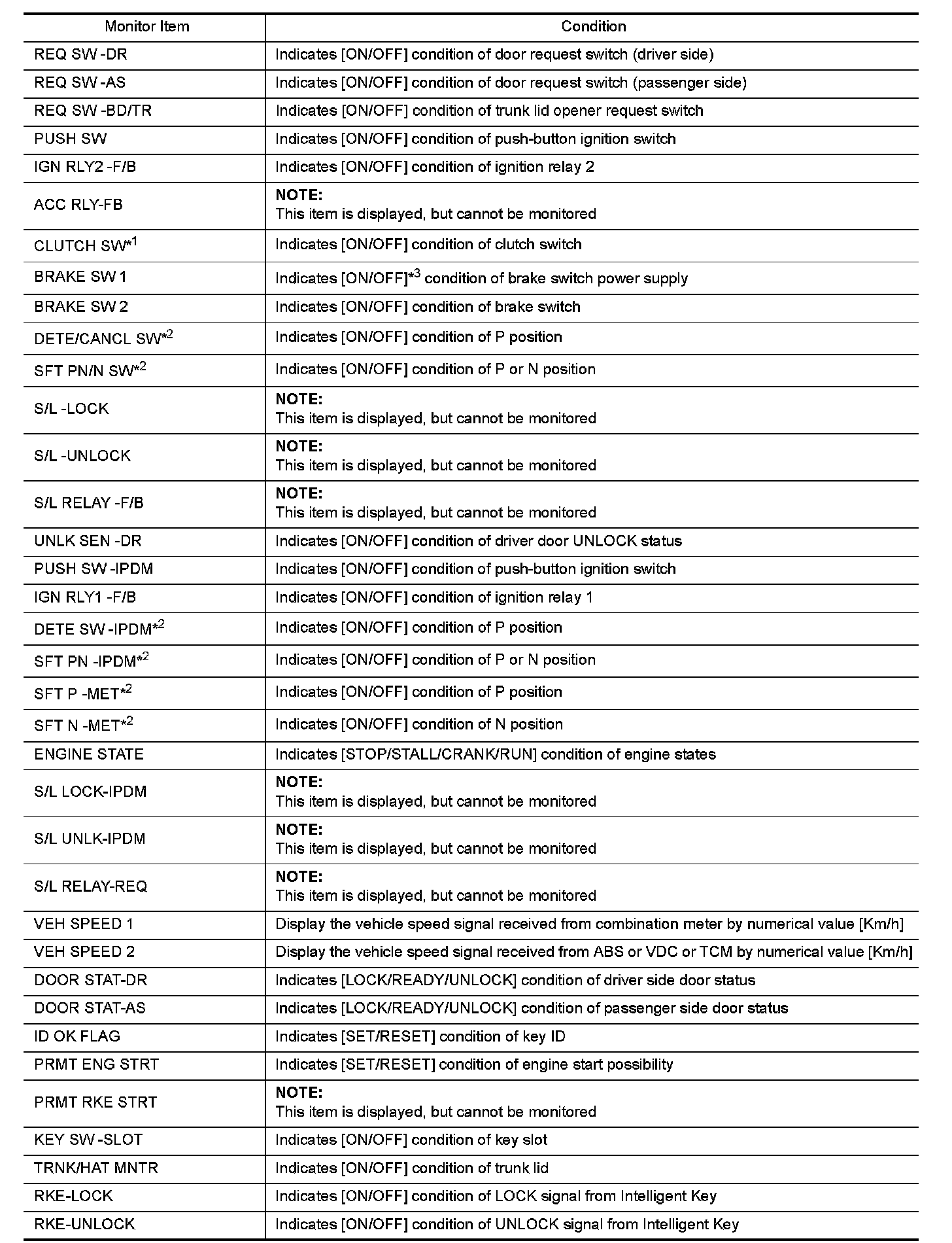 The following table includes information (items) inapplicable to this vehicle. For information (items) applicable to this vehicle, refer to CONSULT display items.