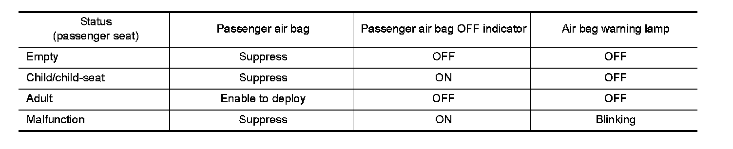 - Turns on passenger air bag OFF indicator when passenger seat is occupied by child-seat and child.
