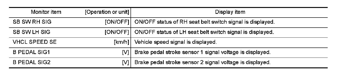 The following table includes information (items) inapplicable to this vehicle. For information (items) applicable to this vehicle, refer to CONSULT display items.