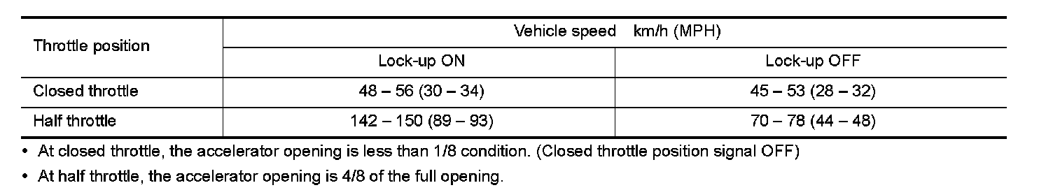 Vehicle Speed at Which Lock-up Occurs/Releases