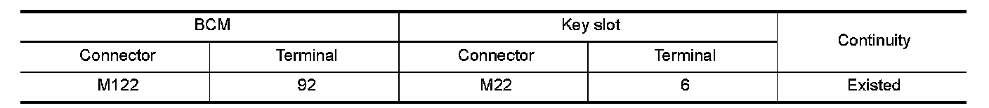 2.Check continuity between BCM harness connector and key slot harness connector.