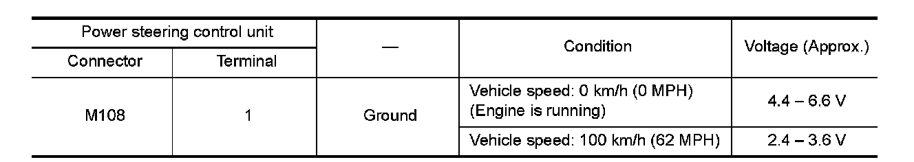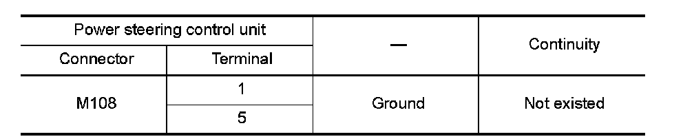 - Check the power steering control unit pin terminals for damage or loose connection with harness connector.