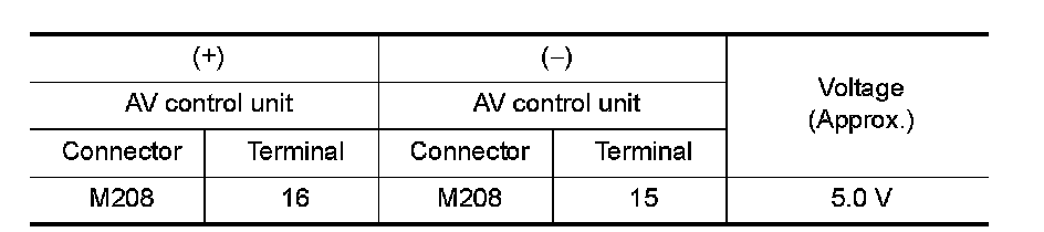 3.Check voltage between AV control unit harness connector.