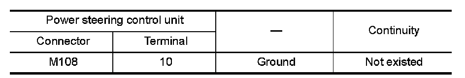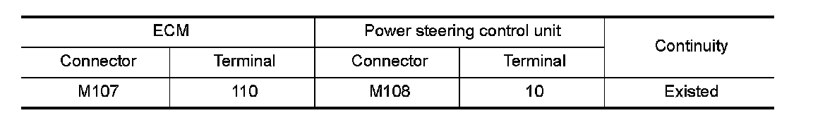 4.Check the continuity between ECM harness connector and power steering control unit harness connector.