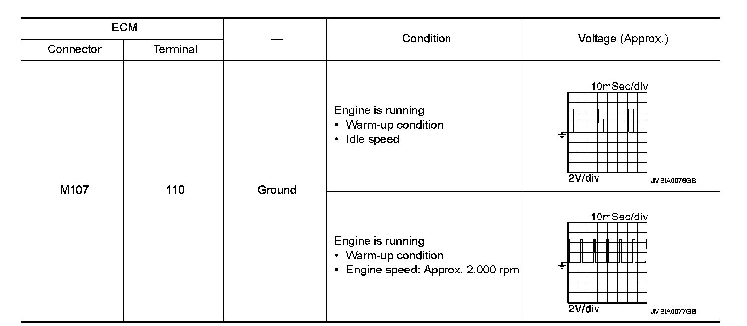 3.Check the signal between ECM harness connector and ground with oscilloscope.