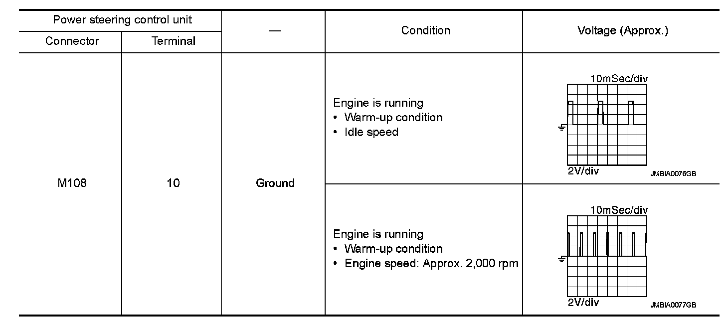 3.Check the signal between power steering control unit harness connector and ground with oscilloscope.
