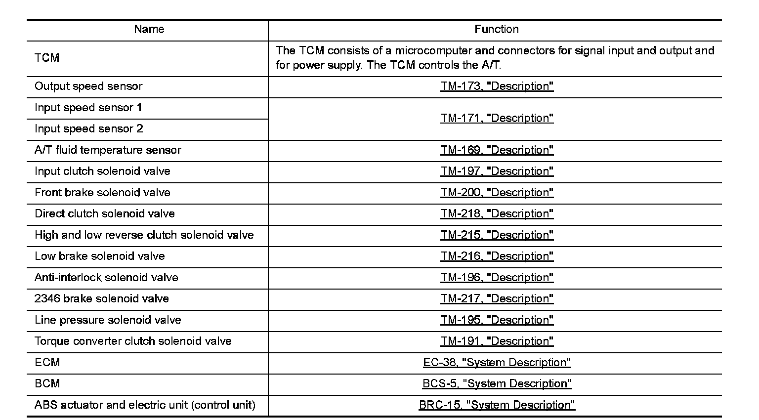 ASC (ADAPTIVE SHIFT CONTROL) : Component Description