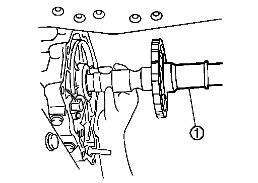 12.Remove output shaft (1) from transmission case by rotating left/