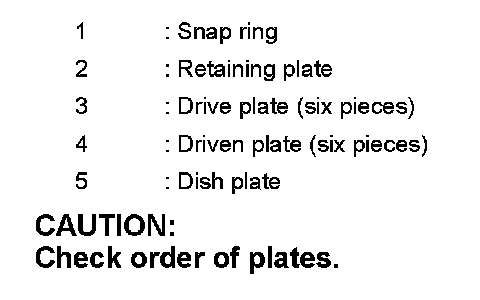 1.Install input clutch component part (drive plates, driven plates, retaining plate, dish plate and snap ring) in input clutch drum.