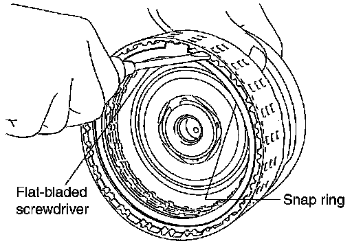 2.Install snap ring in input clutch drum using a flat-bladed screwdriver.