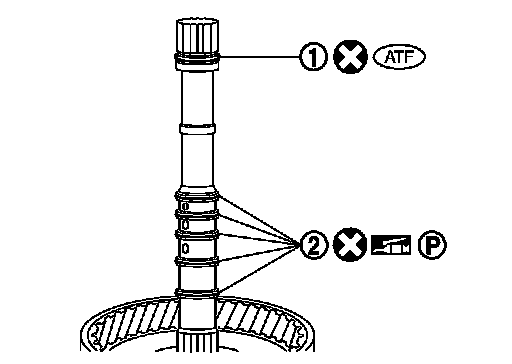 4.Install O-ring (1) and seal rings (2) in input clutch assembly.