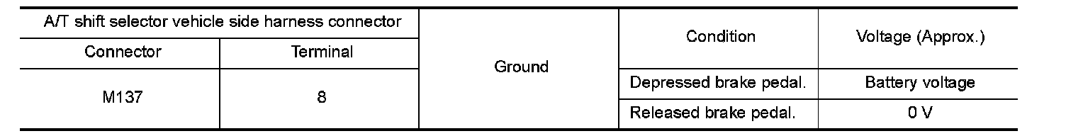 4.Check voltage between A/T shift selector vehicle side harness connector terminal and ground.