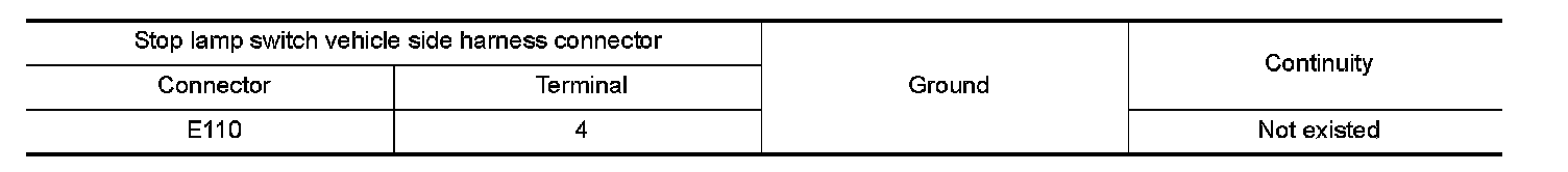 Check continuity between stop lamp switch vehicle side harness connector terminal and ground.