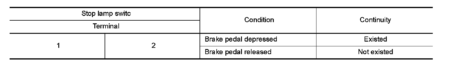 WITH ICC : Component Inspection (Stop Lamp Switch)