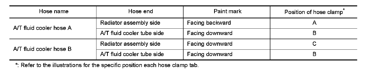 - Refer to the following when installing A/T fluid cooler hoses.