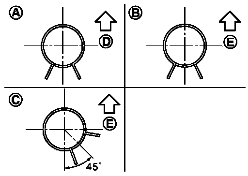 - When installing hose clamps center line of each hose clamp tab should be positioned as shown in the figure.