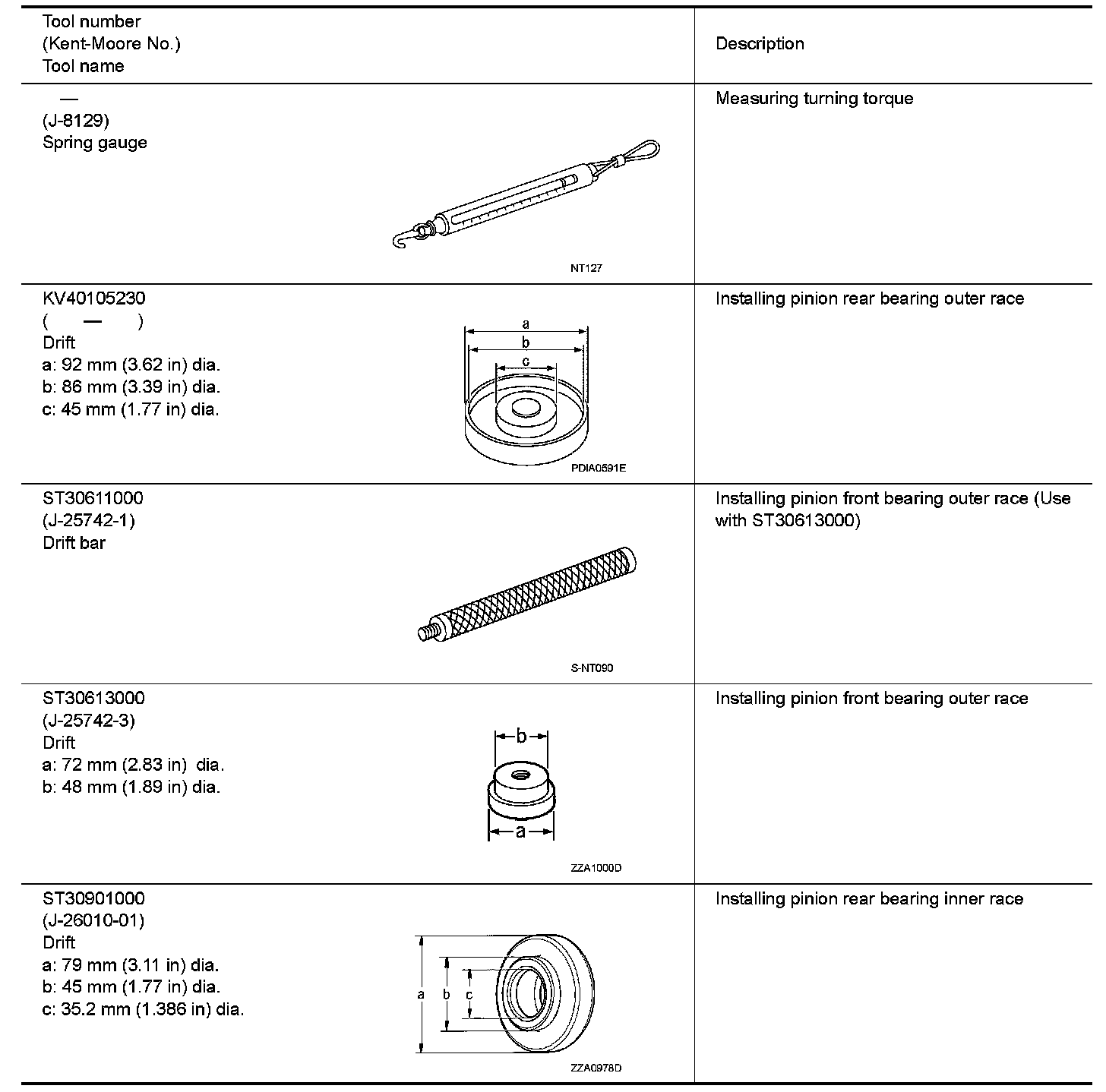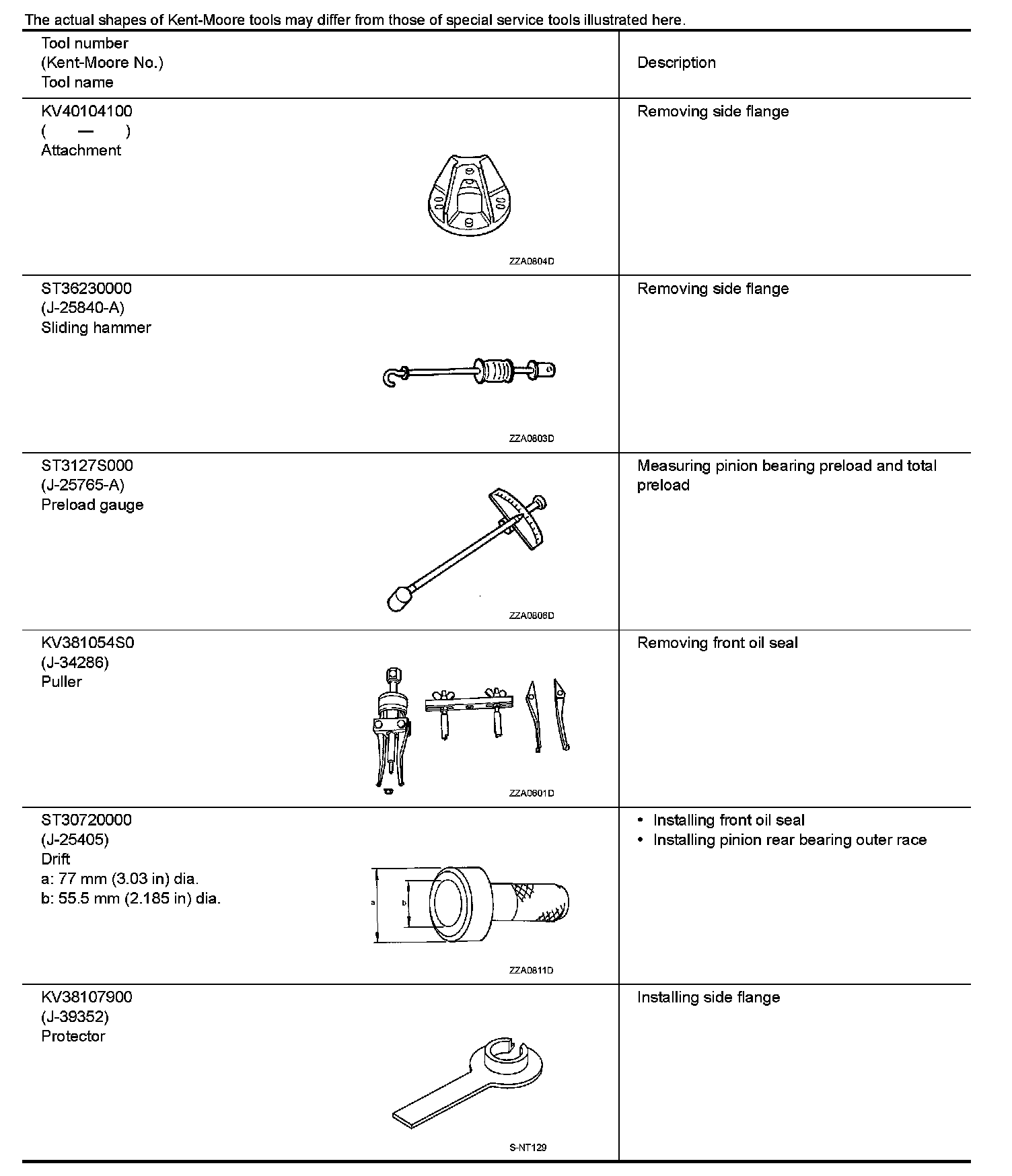 The actual shapes of Kent-Moore tools may differ from those of special service tools illustrated here.