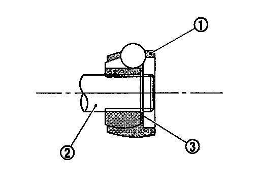 5.Secure ball cage/steel ball/inner race assembly onto shaft with snap ring (3).