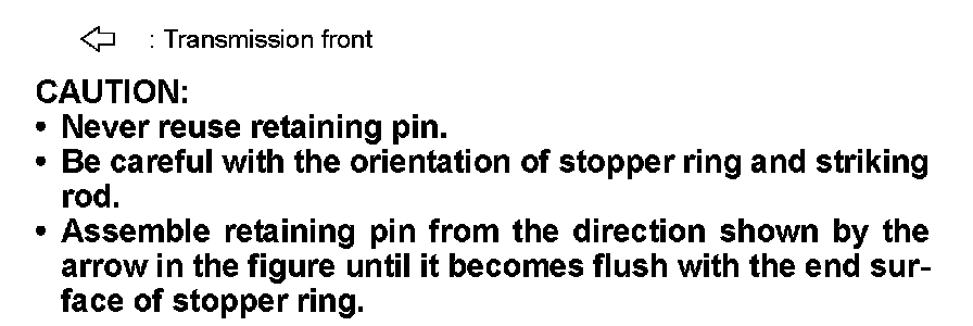 - Assemble retaining pin from the direction shown by the arrow in the figure until it becomes flush with the end surface of stopper ring.