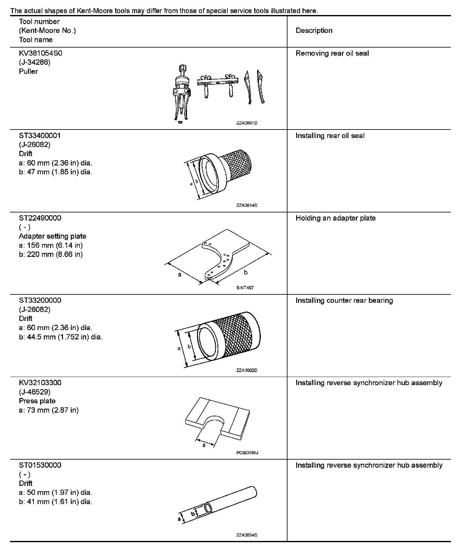 The actual shapes of Kent-Moore tools may differ from those of special service tools illustrated here.