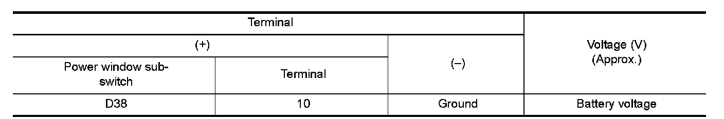 3.Check voltage between power window sub-switch harness connector and ground.