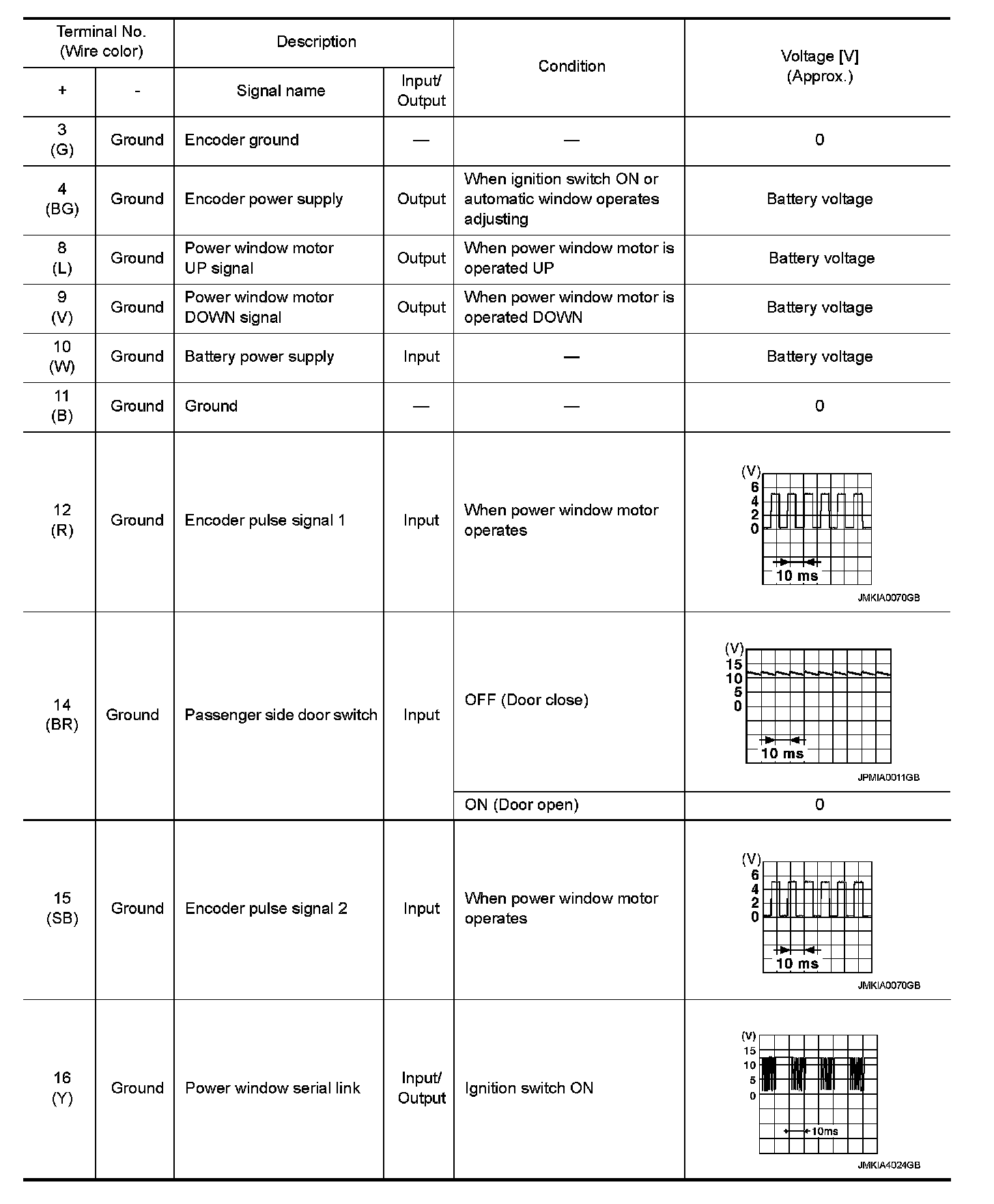 Pinout Values and Diagnostic Parameters