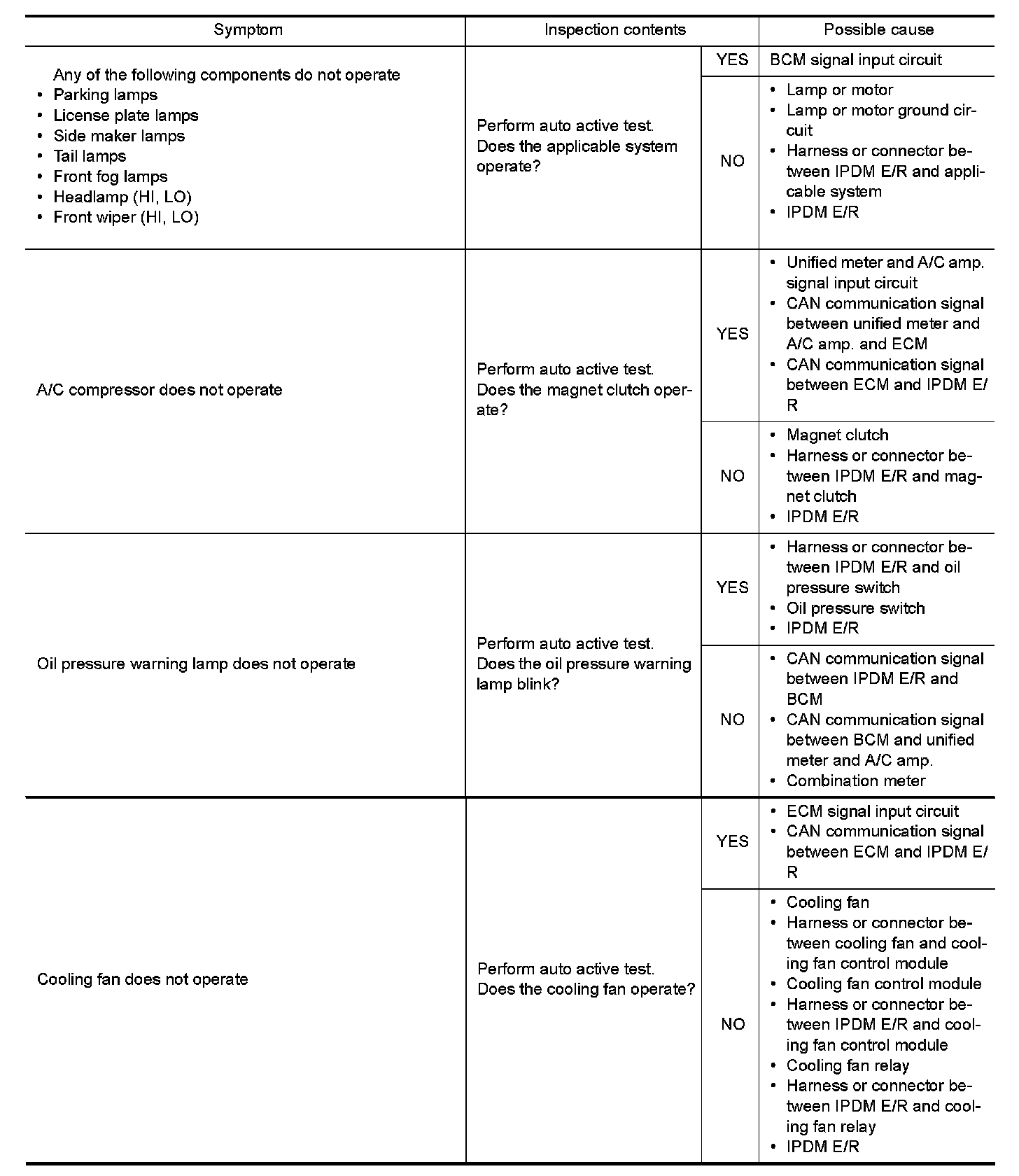 - The auto active test facilitates troubleshooting if any systems controlled by IPDM E/R cannot be operated.